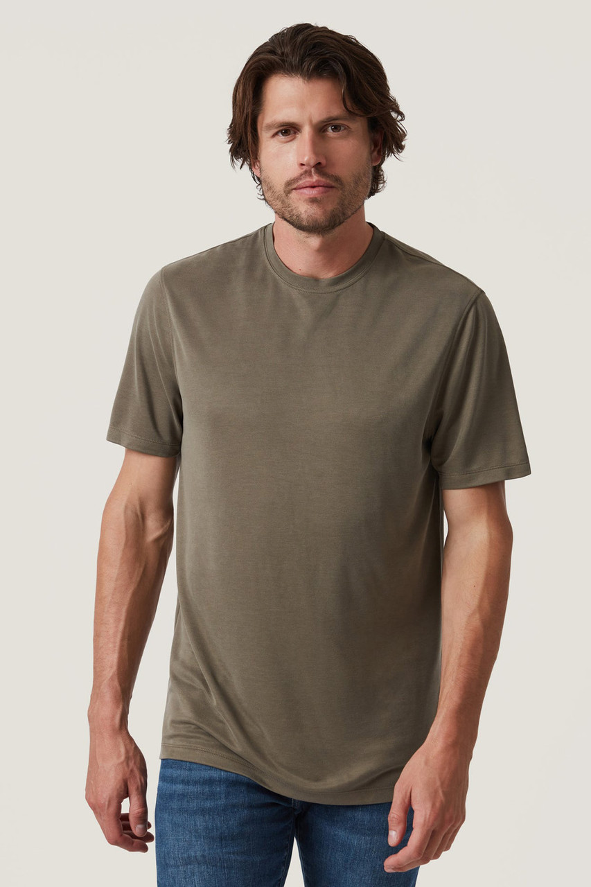 Made from premium Tencelâ„¢ and super-soft polyester, this is a luxurious take on the classic blue t-shirt. Comfortable and polished with the perfect drape, your search for the perfect t-shirt is over. By 34 Heritage.Â