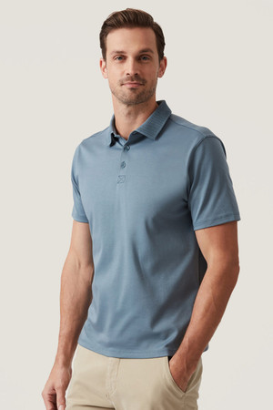 This polo has a three-button neckline with a textured collar for subtle flair. Designed for a close fit that is both flattering and easy to move in, this top will keep you stylish and comfortable from dawn to dusk. By 34 Heritage.