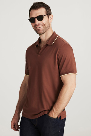 Effortlessly transitions from office hours to after hours. With cream trim along the collar and sleeves, this rich brown polo brings a refined touch to a wardrobe essential. Layer it under a jacket for a timeless, understated look. By 34 Heritage.