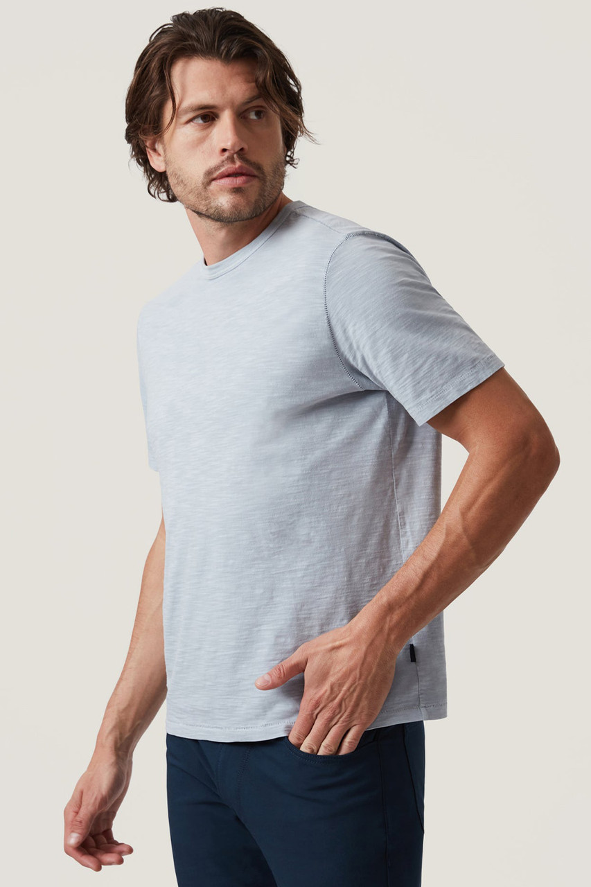 Look no further for the perfect t-shirt. This ultra-soft short sleeve is finished in a vintage light blue hue with light fading, giving it a vintage feel. By 34 Heritage.