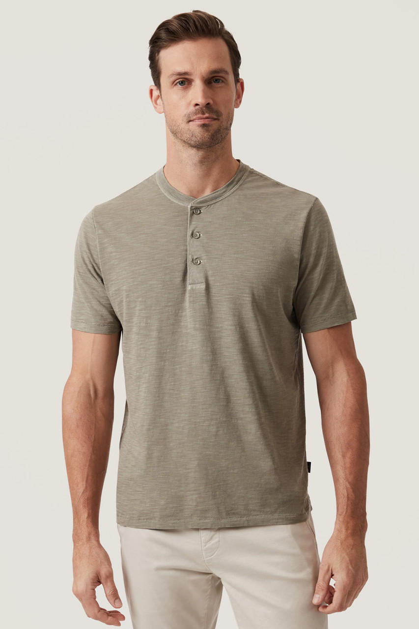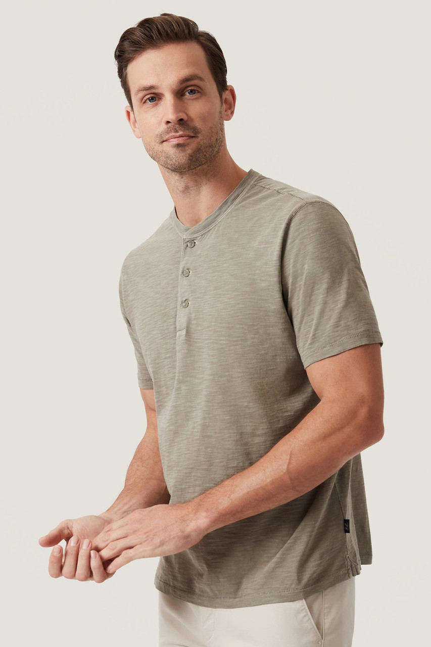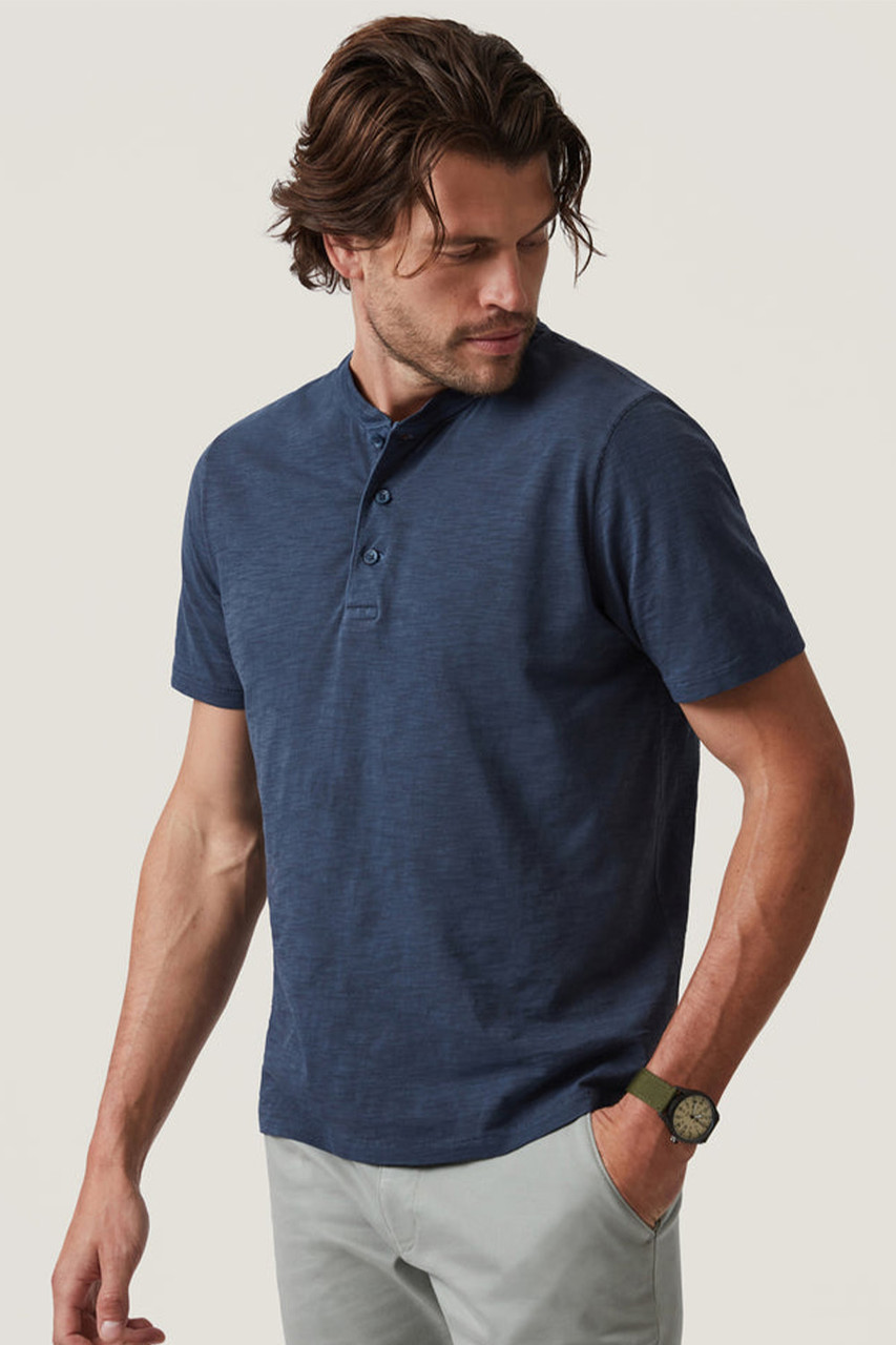 Crafted with luxurious cotton, this henley shirt has an ultra-soft feel. Finished in a vintage-inspired navy hue, this henley is the ideal casual top to pair with your favorite jeans or trousers. By 34 Heritage.
