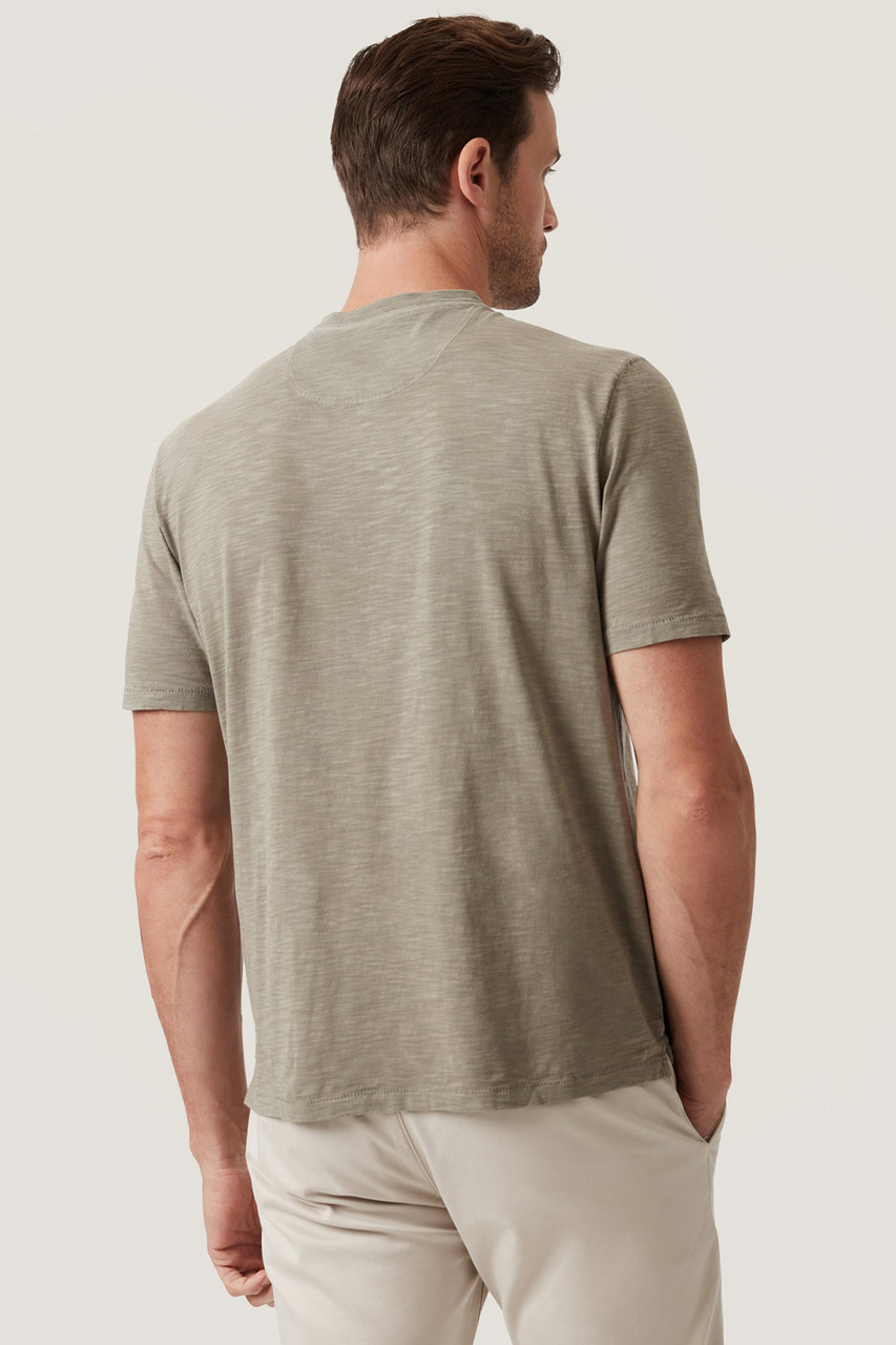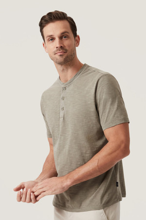 Crafted with luxurious cotton, this henley shirt has an ultra-soft feel. Finished in a vintage-inspired olive hue, this henley is the ideal casual top to pair with your favorite jeans or trousers. By 34 Heritage.