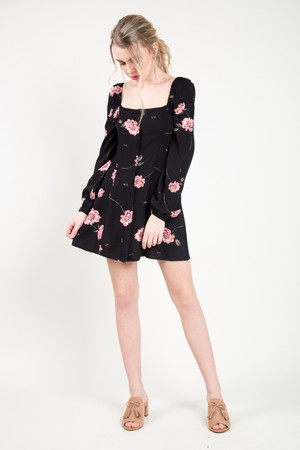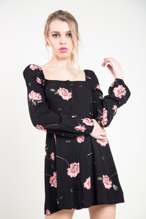 She’s a looker in our Easy on the Eyes Dress with full sleeves and button front detail that falls at mid-thigh. By Amuse Society.