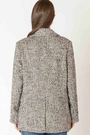 Embrace autumn vibes with the Dex Black Tape Textured Longline Blazer, a classic fall jacket reimagined in cozy tweed. Its longline silhouette adds a stylish flair, while the textured tweed fabric brings warmth and character. Perfect for layering on crisp days, this blazer combines timeless charm with a playful twist to keep your look fresh and fun all season long. By Black Tape.