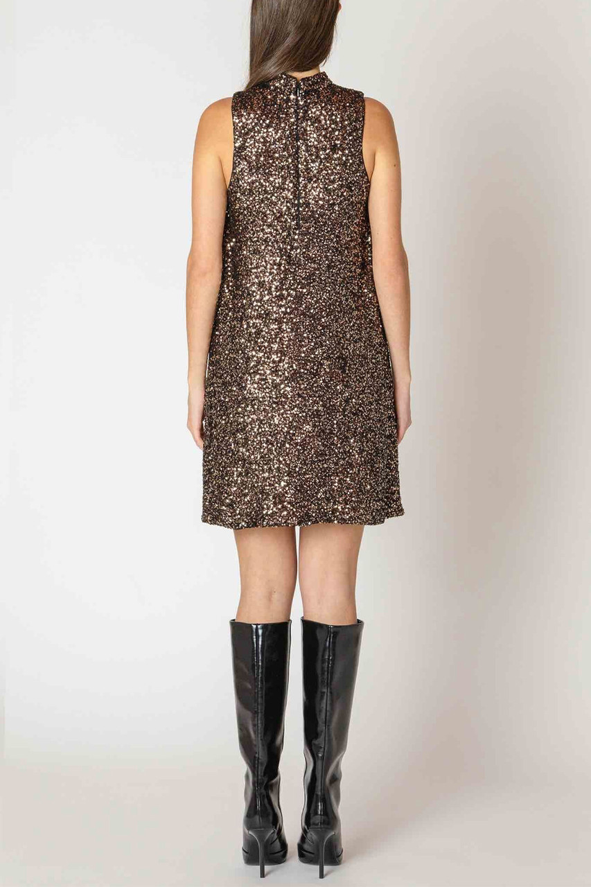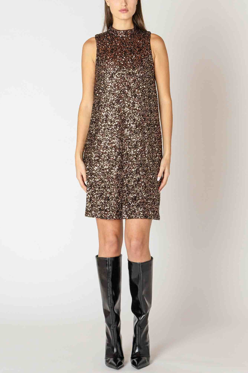 Elevate your seasonal celebrations with the Dex Black Tape Mock Sequin Dress. This sophisticated piece features a subtle sequin detail that catches the light gracefully, making it perfect for high-end parties. Its modern cut and refined silhouette ensure you look effortlessly polished and stylish throughout the evening. Ideal for those who seek understated glamour with a contemporary edge. By Black Tape.Â