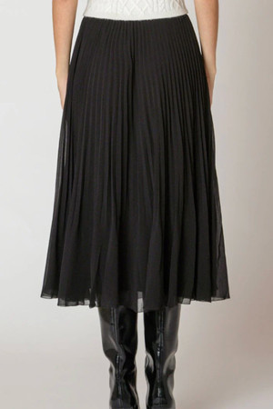 Step into fun and flair with this pleated black skirt! Its flowing pleats add movement and charm, making every step a playful dance. Perfect for twirling through your day or styling up for a night out, this skirt brings effortless style with a hint of whimsy. By Black Tape.