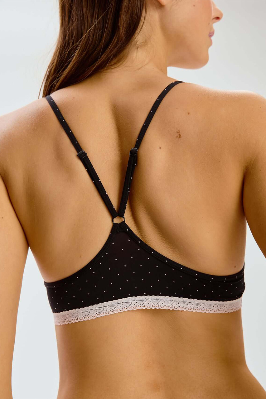 This everyday racerback bralette is flirty with a touch of sporty flair. The silky microfiber and lace trim hug your curves, while the front shirring provides subtle shaping. By Blush.