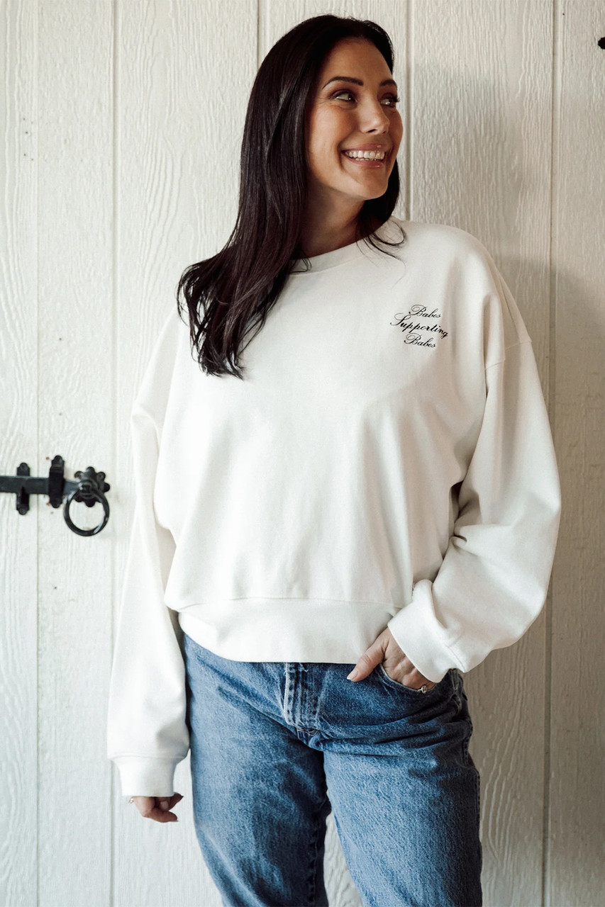 Say hello to our “Babes Supporting Babes” Girlfriend Crew. Our Girlfriend Crew is a relaxed silhouette that sits perfectly at the hip with a dropped shoulder for extra comfort. This style is meant for a true to size fit rather than oversized fit – see the size chart for more details. By Brunette The Label.Â
