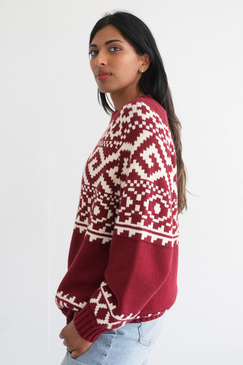 In Burgundy + Cream 50% Viscose, 28% Nylon, 22% Polybutylene Terephthalate Fits True to Size for an Oversized Fit