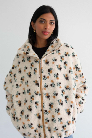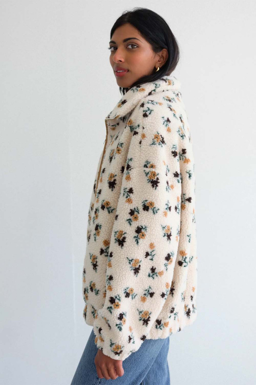 Shop our new Floral Sherpa Jacket in the most gorgeous fall-inspired colourway. Inspired by autumn in the English countryside – cream, brown and yellow flowers flock this cozy staple that will transition you right into our favourite season. By Brunette The Label.