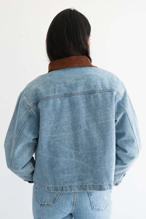 With its corduroy collar, three patch pockets, and tortoise button details, this vintage-inspired piece feels both timeless and modern. Crafted in a mid-blue wash with a quilted lining for extra warmth, it’s the jacket you’ll reach for from the first signs of fall through the last. By Brunette The Label.Â
