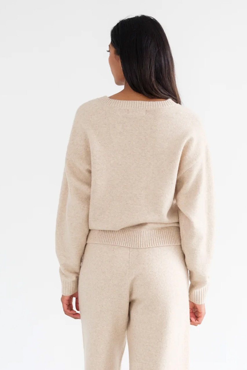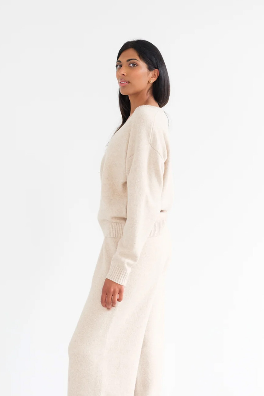 In Oatmeal Melange 50% Viscose, 28% Acrylic, 14% Polyamide, 5% Wool , 3% Spandex – 9GG Fits True to Size