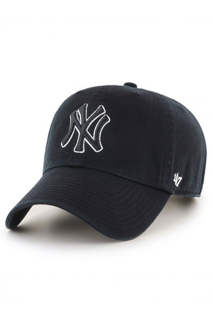 47 Brand Clean Up NY Yankees Cap in Black/Black + White