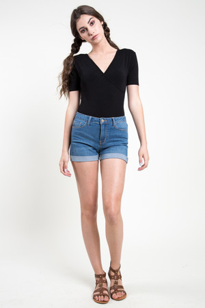 This wrap bodysuit will stay pull all day long, stylish and practical.