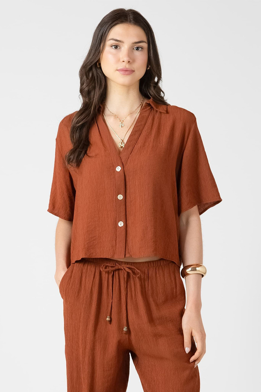 Effortless summer style meets comfort in this relaxed-fit blouse. The V-neck and short sleeves keep things breezy and laid-back, perfect for warm days when you want to look put-together without trying too hard. Throw it on with your favorite denim or shorts and you’re ready to go. By Dex.Â