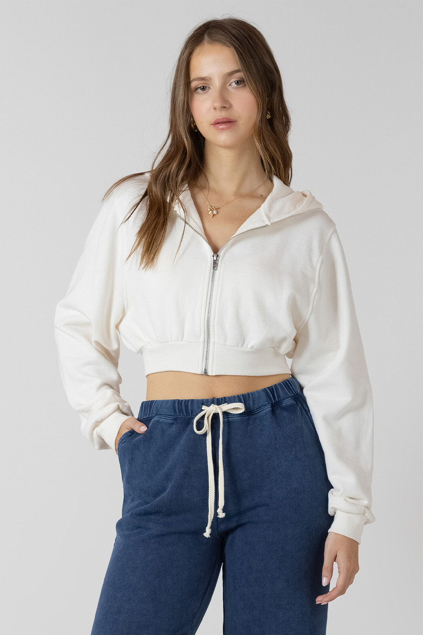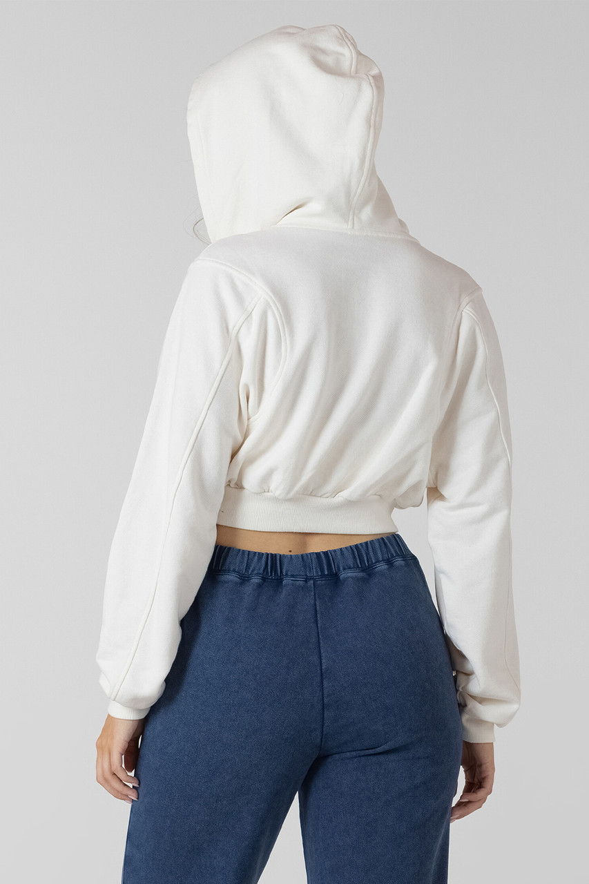 This cropped hoodie is made from an ultra-soft fabric in a light heathered oatmeal hue for the ultimate cozy feel. Designed with a relaxed fit and an easy cropped length, it’s perfect for layering or wearing on its own. By Dex.Â