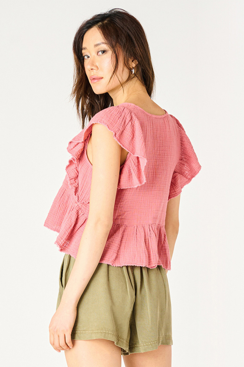 Dex Flutter Sleeve Top in Rose Terracotta