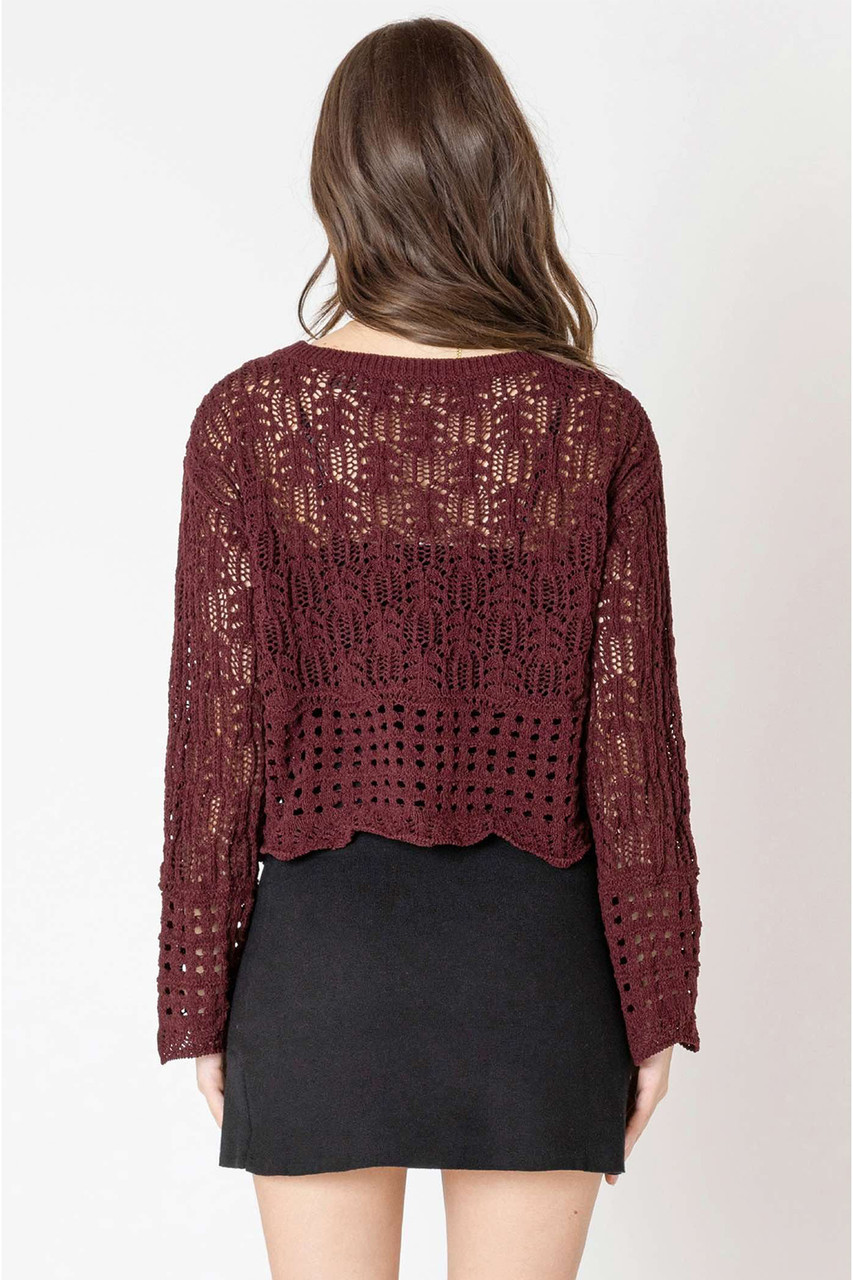 Cozy up in the Dex Open Stitch Wavy Hem Sweater, perfect for crisp fall days. Its open stitch design adds a breezy touch, while the long sleeves keep you warm and comfy. The wavy hem brings a fun twist to your autumn wardrobe, making it a playful yet stylish choice for layering this season. By Dex.