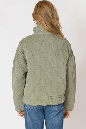 Stay cozy and stylish in this olive green quilted jacket that’s as fun as it is functional. With a zip-up front for easy wear, roomy patch pockets to stash your essentials, and an adjustable drawstring hem to tailor your look, it’s the perfect jacket to zip through your day with a playful twist. By Dex.