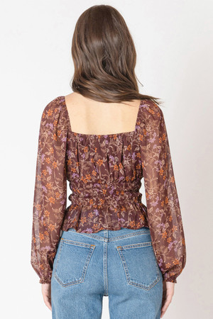 This romantic floral blouse features a smocked bodice, sheer long sleeves, and a flattering square neckline. By Dex.Â