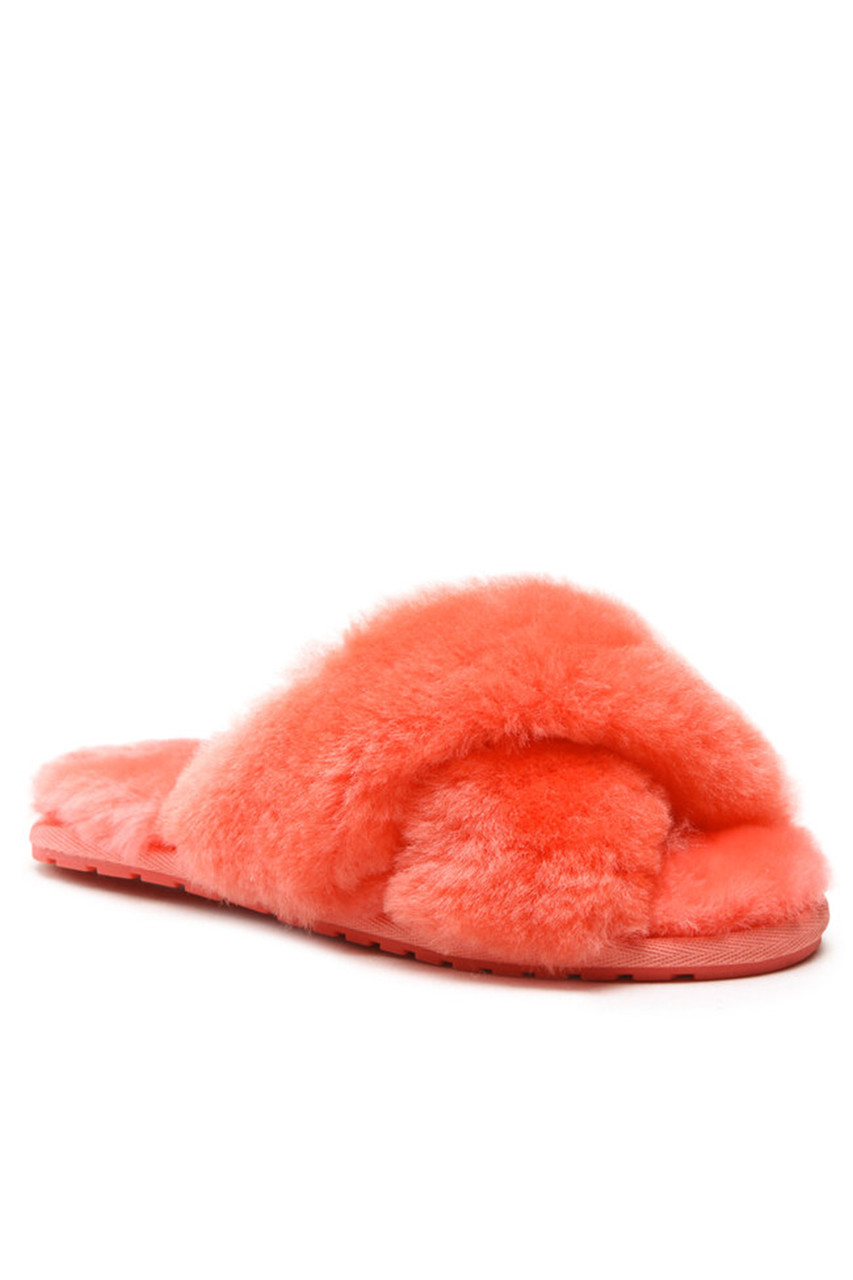 In Red Fire 100% Australian sheepskin upper 100% Australian sheepskin footbed for ultimate comfort Crossover design detail Fluffy, cosy and stylish slipper Breathable sheepskin that naturally wicks away moisture for odourless footwear Australian sheepskin keeps feet cool in summer and warm winter Lightweight, flexible TPR outsole with wave design for traction and support Woolmark Accredited Snug fit