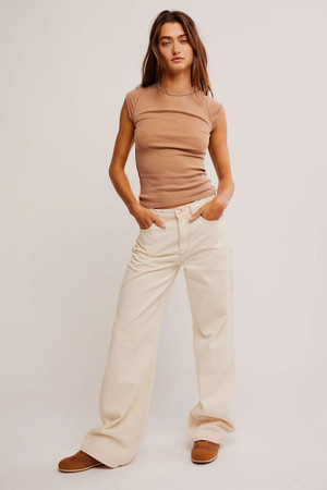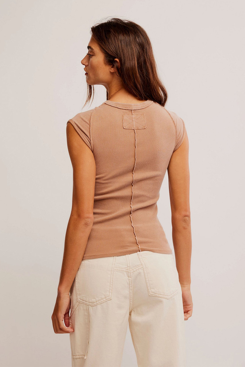 Your new favourite timeless tee from the We The Free collection, featured in a soft, ribbed knit fabrication and slim-fitting silhouette with raised seam detailing and cap-inspired sleeves. By Free People.Â