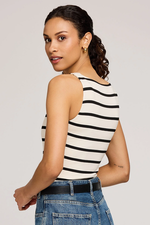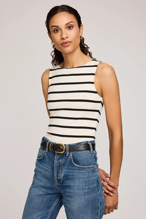 The Cyrus tank is made of a soft rayon jersey fabric and fully lined for extra coverage. Features include a boat neckline and slightly cropped length for easy layering. By Gentle Fawn.