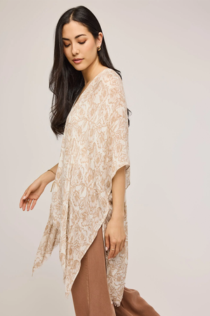 The Dawn cover-up is made of EcoVero viscose and features a print that was designed in-house. Layer it with a t-shirt and jeans for a casual look, or over a bathing suit for a day at the beach. By Gentle Fawn.