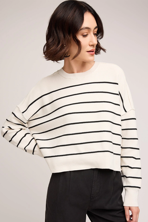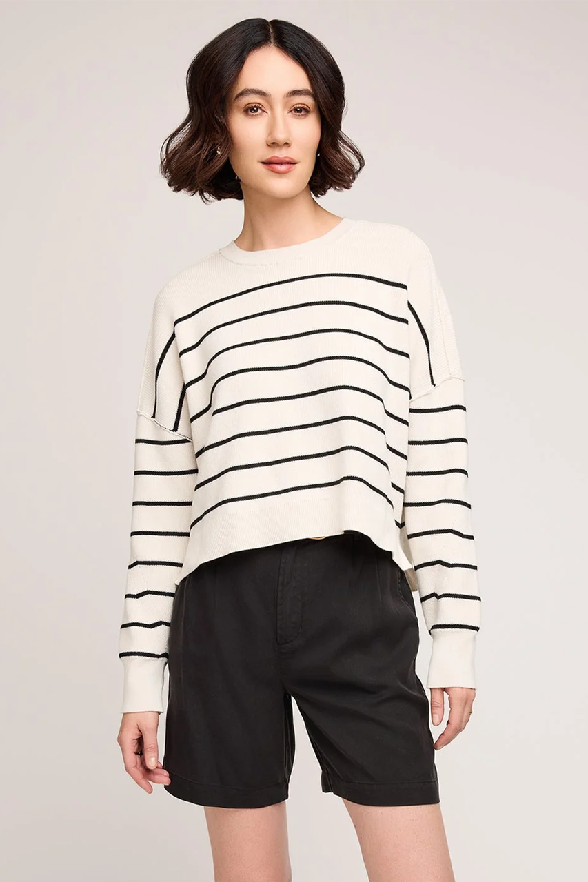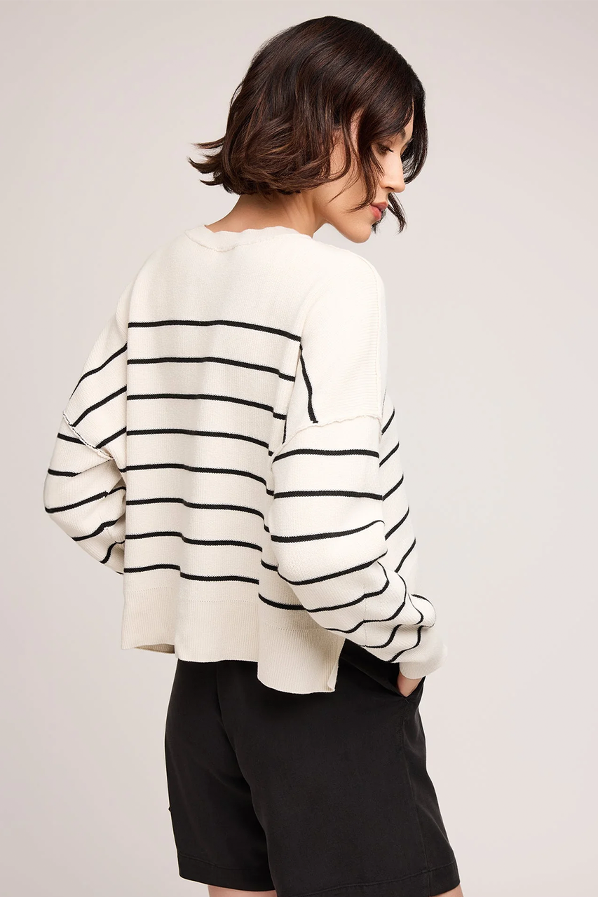 The Echo sweater is made of a super soft yarn in a half cardigan stitch. Features include exposed seam detailing and side slits for an effortless look. By Gentle Fawn.