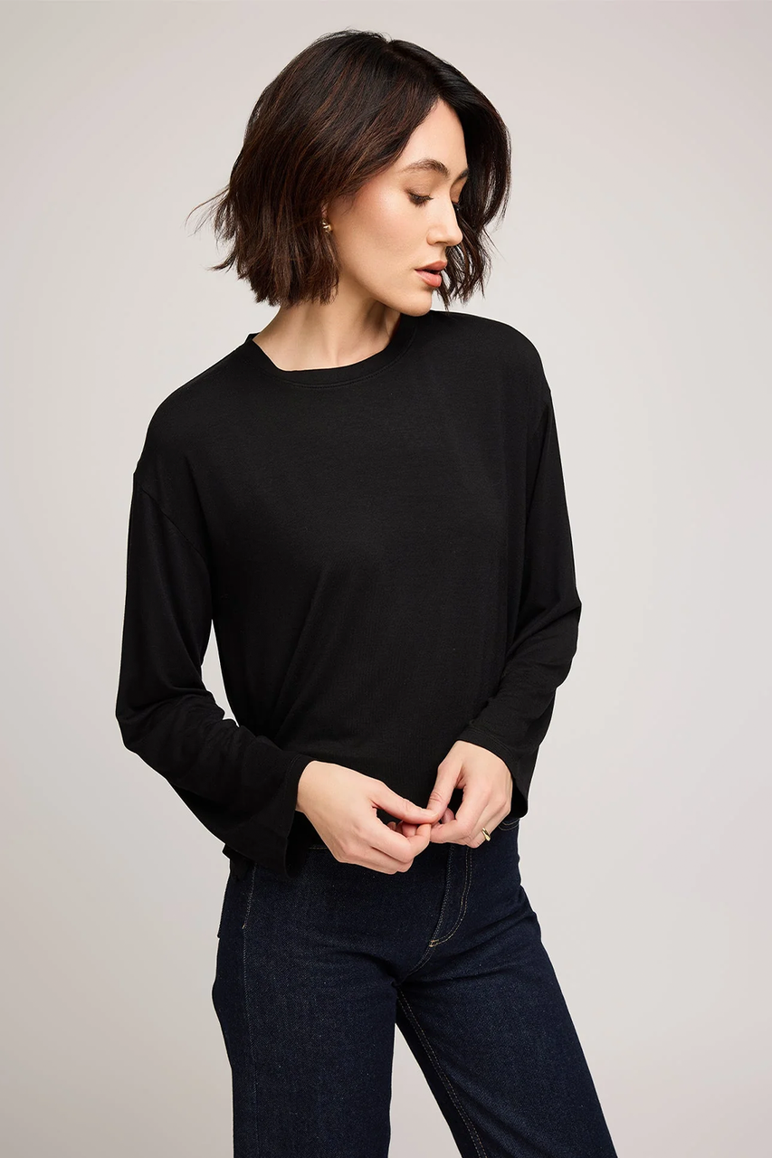 The Indy top is made of a soft rayon jersey fabric. Features include a crew neckline and side slits. By Gentle Fawn.