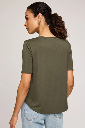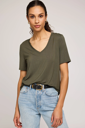 The Jamie t-shirt is made of super soft EcoVero rayon jersey. Features include a v-neckline and relaxed fit that is perfect for everyday wear. By Gentle Fawn.