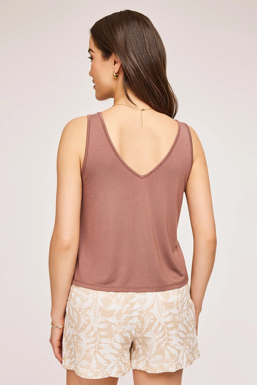 The Kai tank is made of super soft EcoVero rayon jersey. Features include a front and back v-neckline and side slits. By Gentle Fawn.