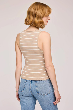 The Sierra tank is made of a yarn that has the perfect amount of stretch for a contour smoothing fit. Features include a scoop neckline and rolled hem detail along the neckline and armhole. By Gentle Fawn.