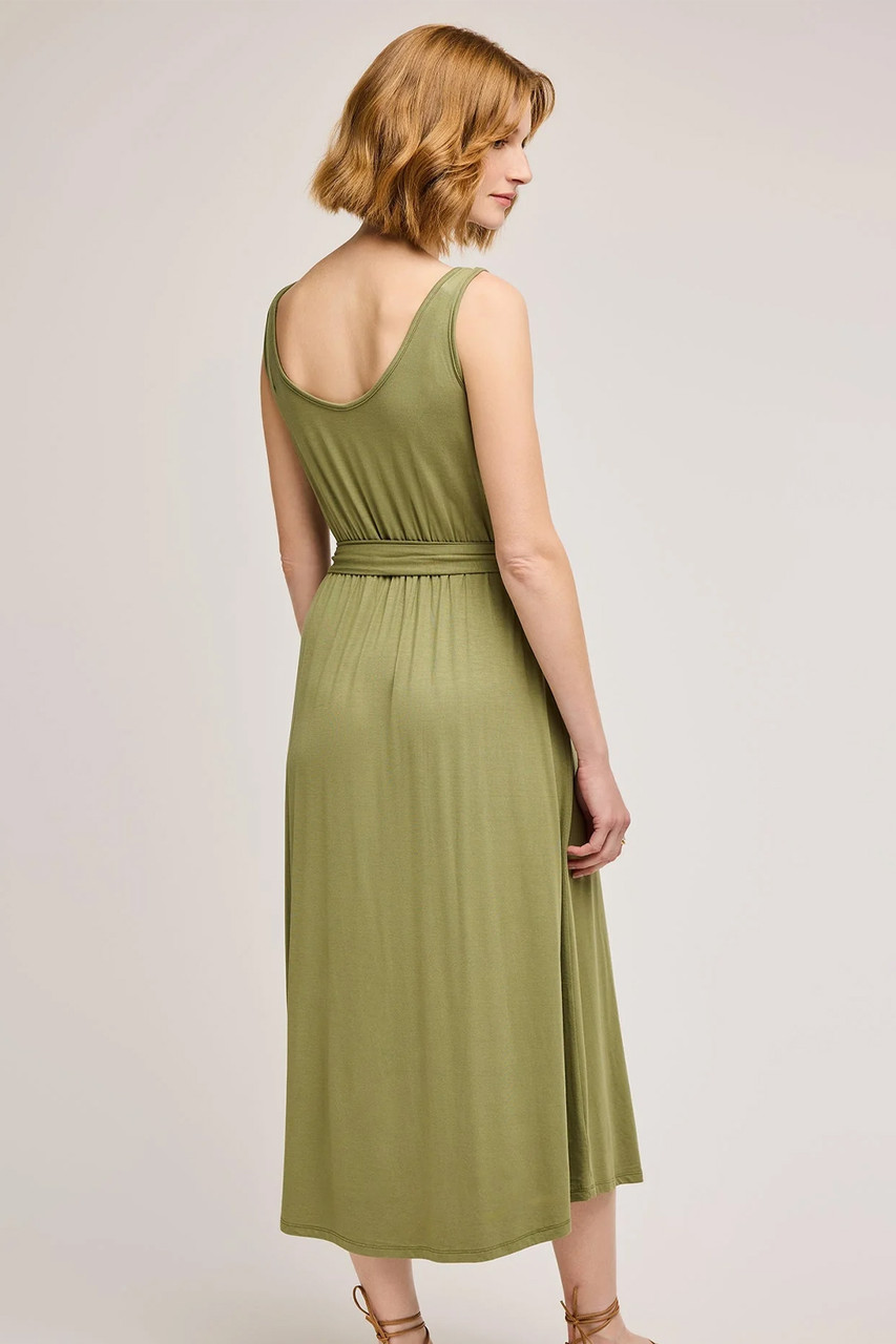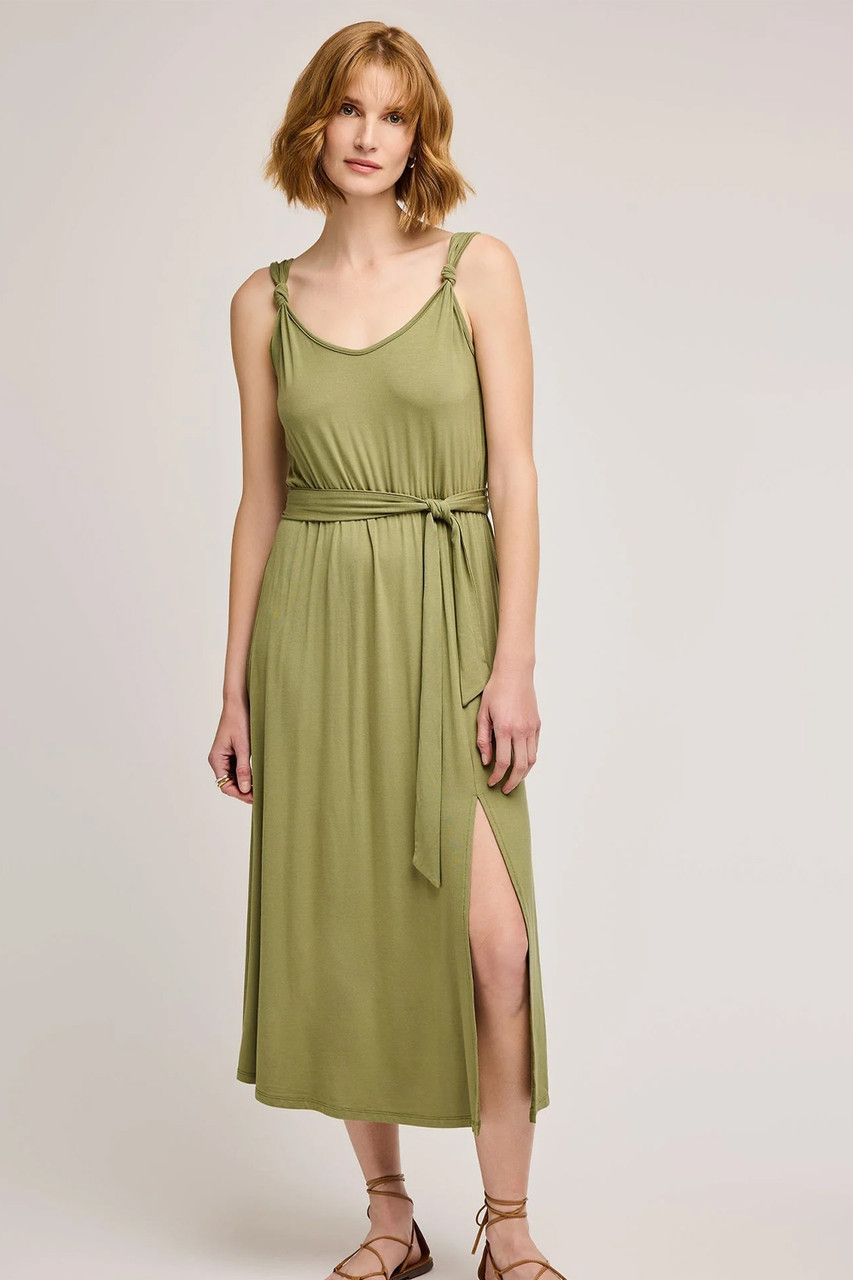 The Solange dress is made of super soft EcoVero rayon jersey. Features include a knotted strap detail and removable belt. By Gentle Fawn.