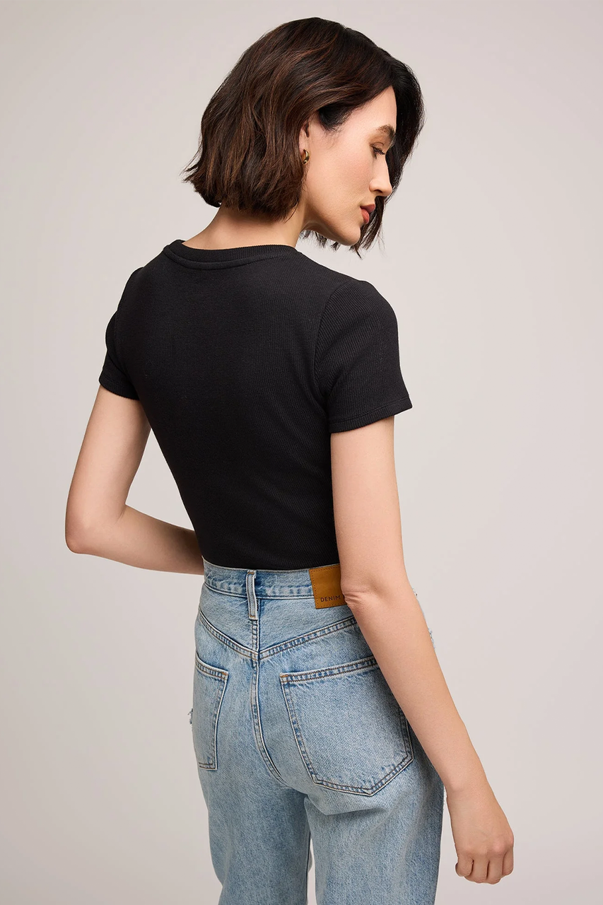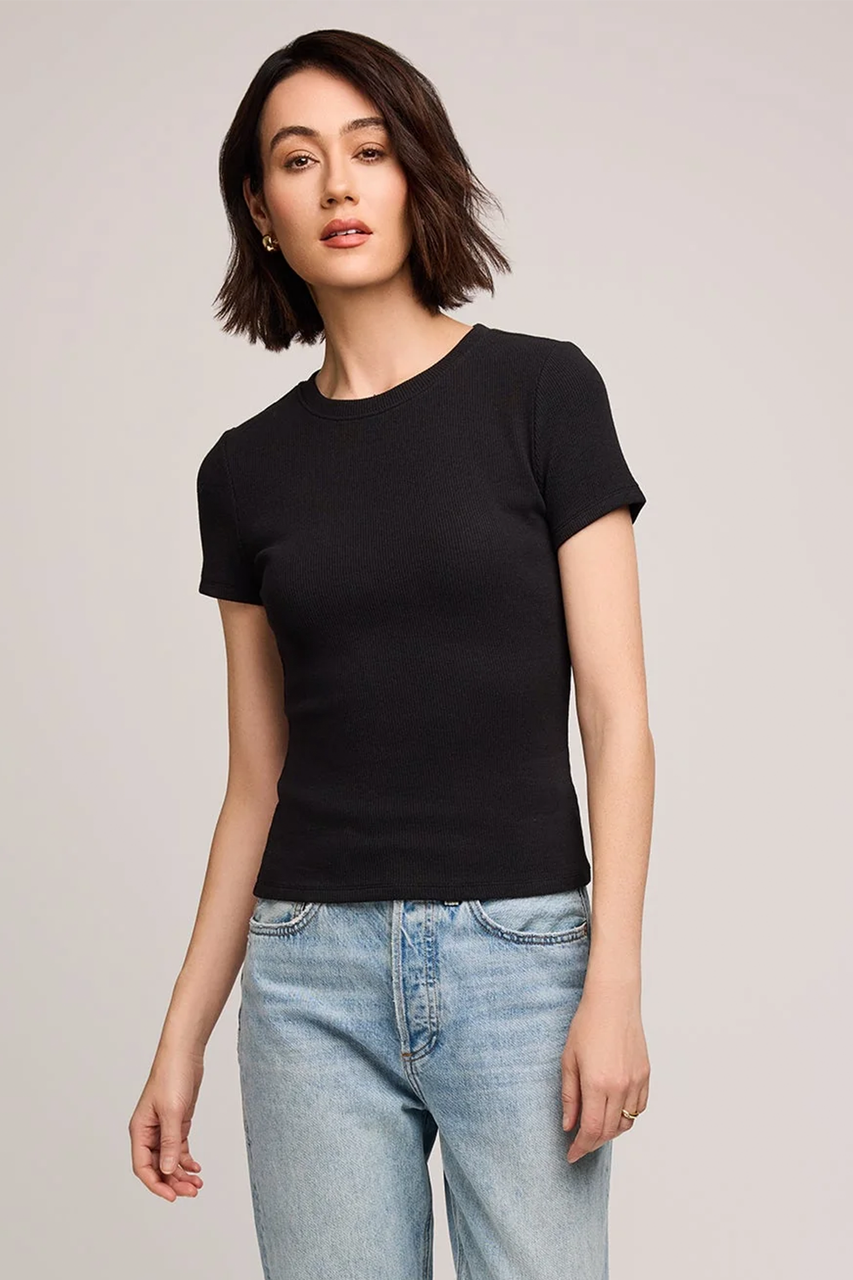 The Tate t-shirt is made of a mid-weight cotton viscose ribbed fabric. The classic crew neck tee is an essential layering piece that you’ll want in every color.