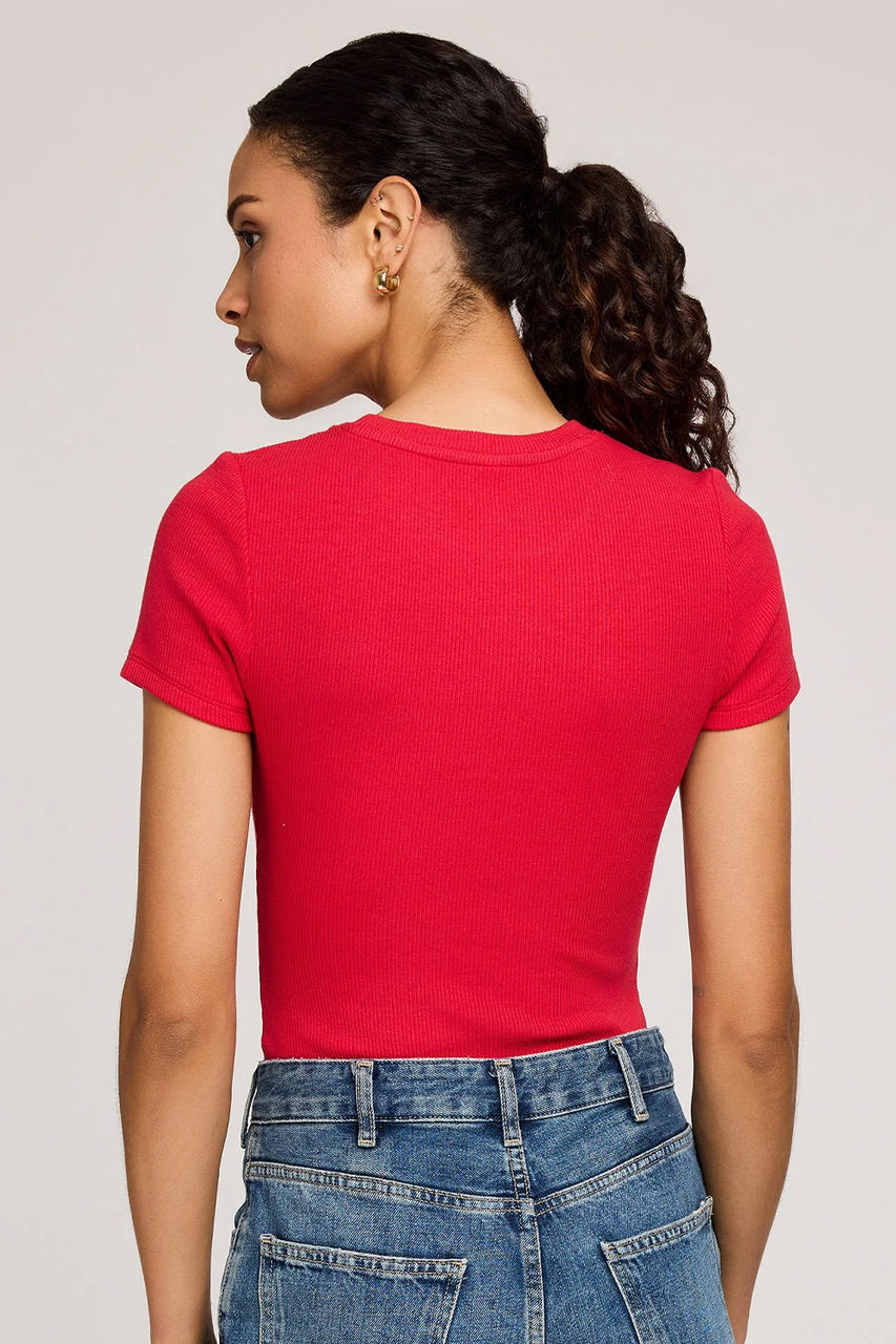 The Tate t-shirt is made of a mid-weight cotton viscose ribbed fabric. The classic crew neck tee is an essential layering piece that you’ll want in every color. By Gentle Fawn.