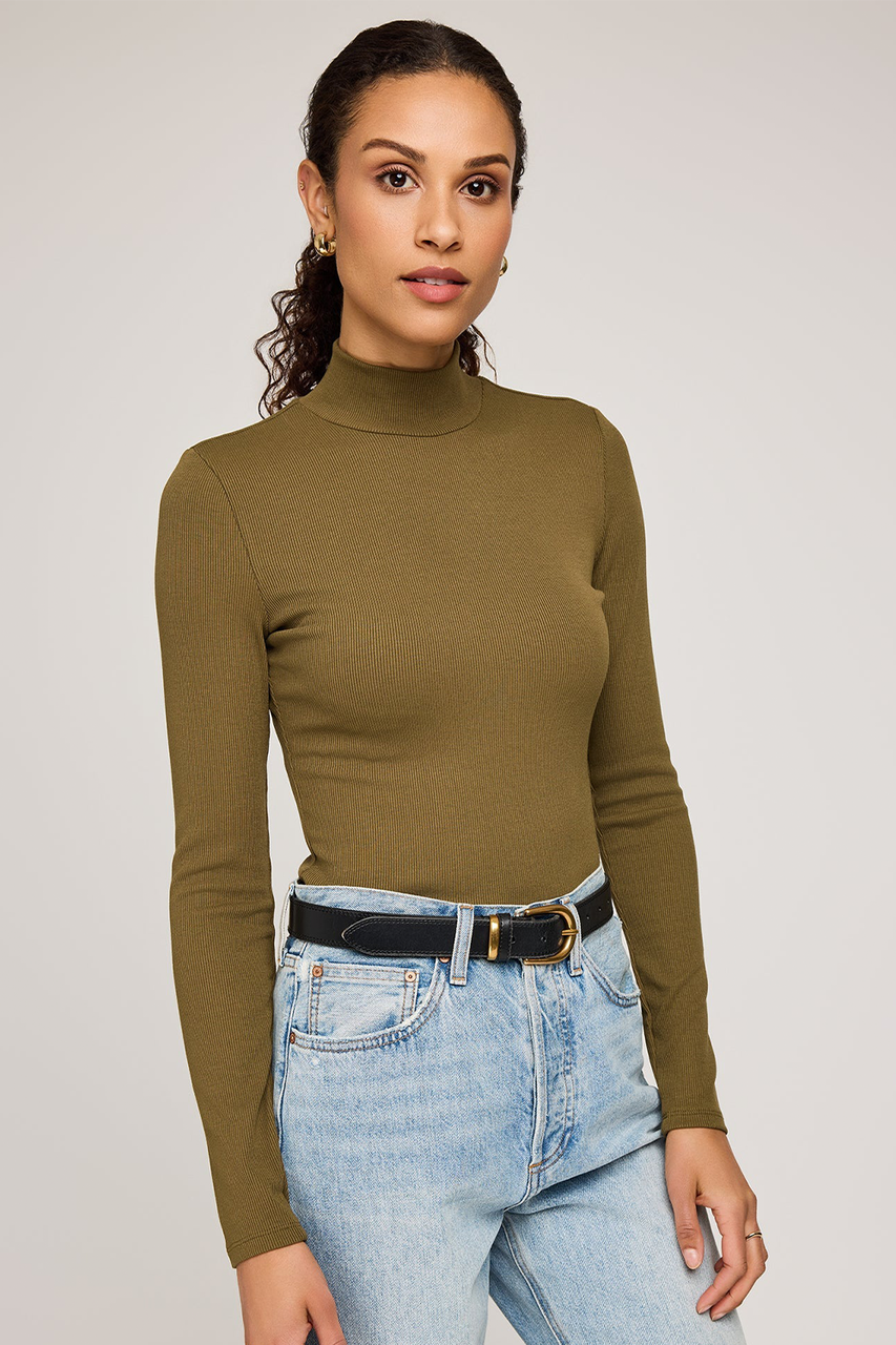 The Wren top is made of a stretchy ribbed fabric that hugs the body. The effortless silhouette can be worn as is or tucked into high-waisted bottoms.