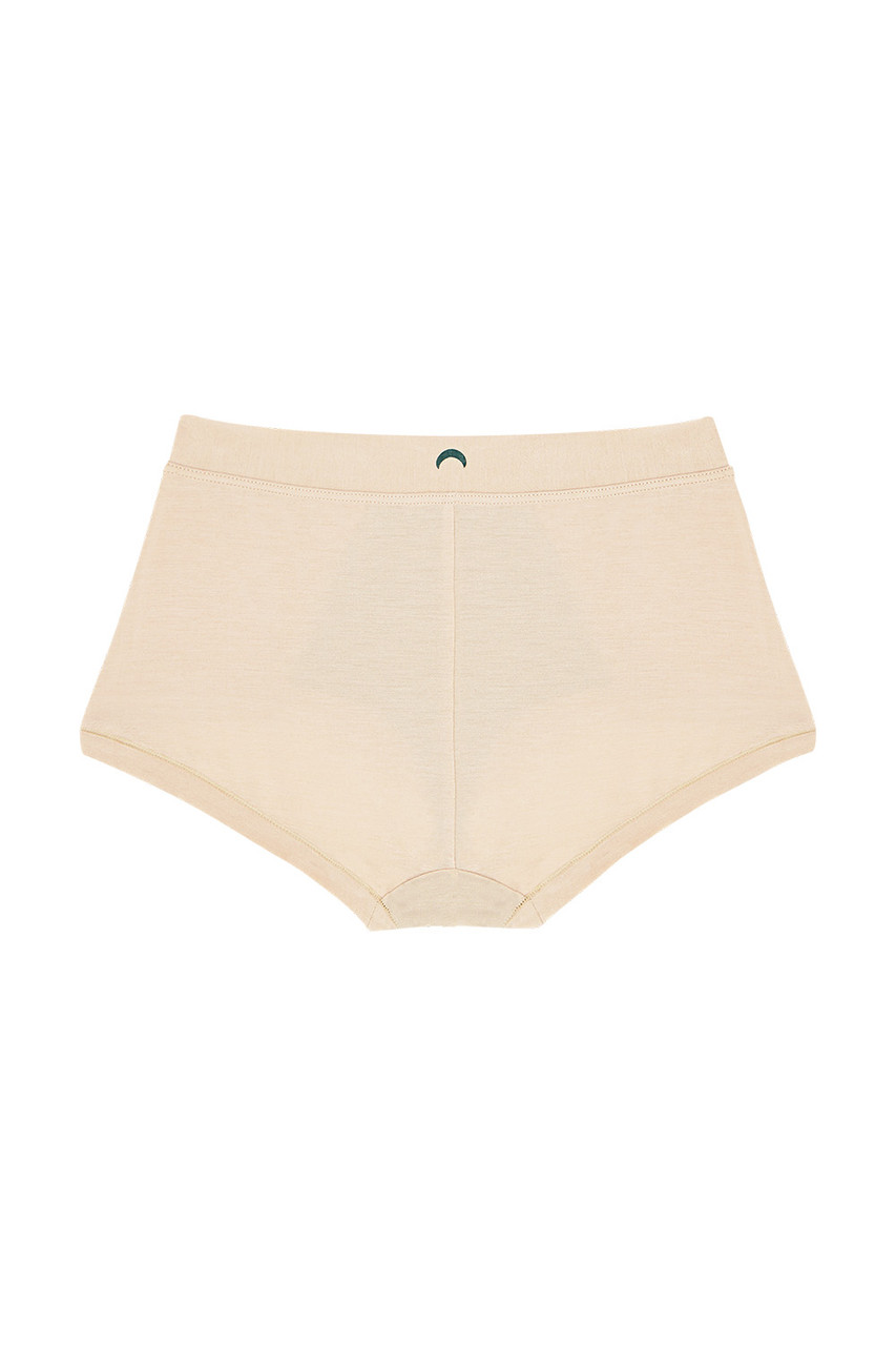 Our Brief delivers next-level comfort whether you’re lounging around or moving through your day. With our highest rise, a soft wide-cuffed waistband, and a supportive front panel, this design minimizes pressure on the lower abdomen and feels like a hug enveloping your sensitive areas. The modest-cut leg is cuffed without elastic to keep you moving freely—and features just a peak of cheek. By Huha.Â