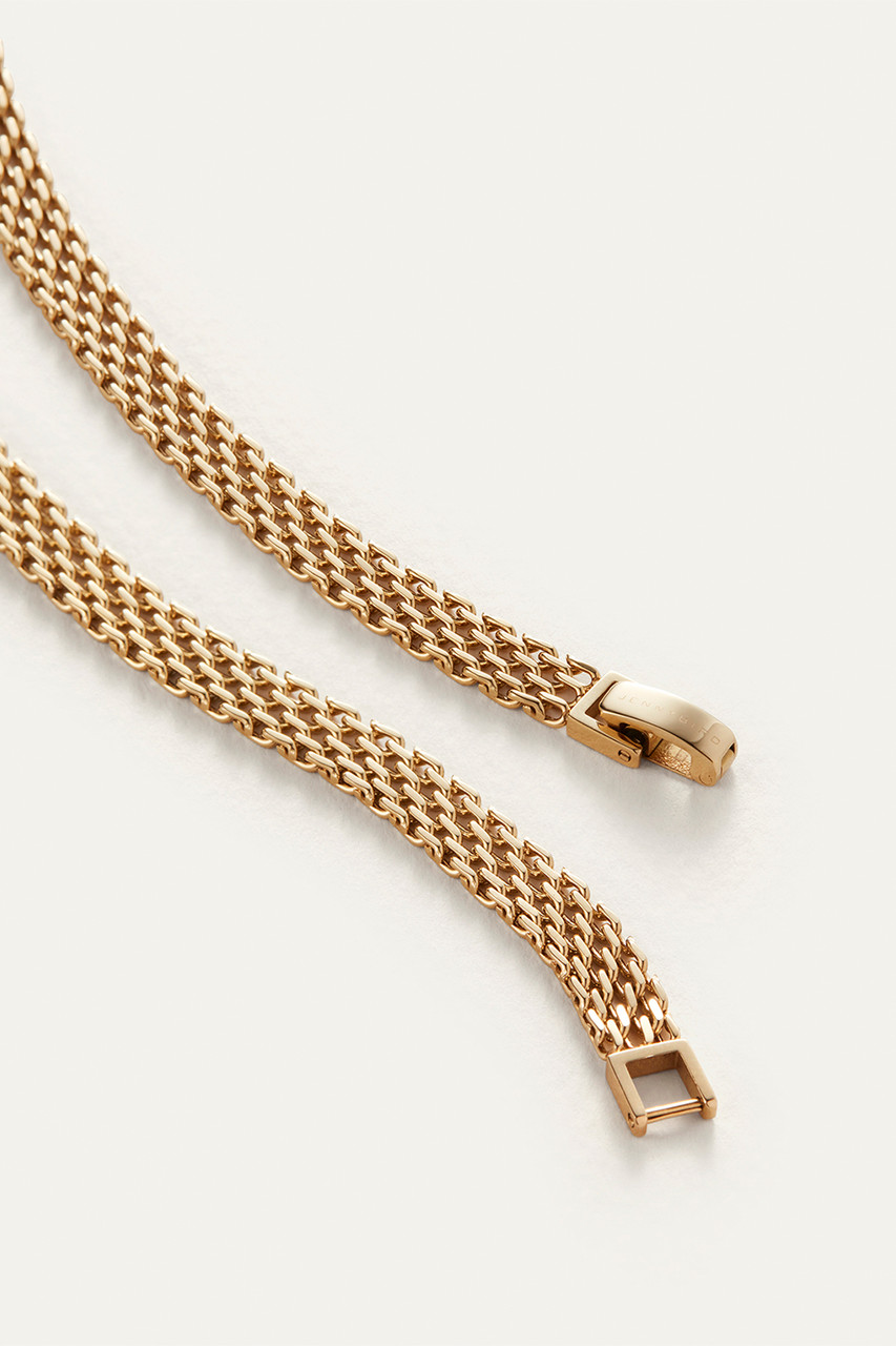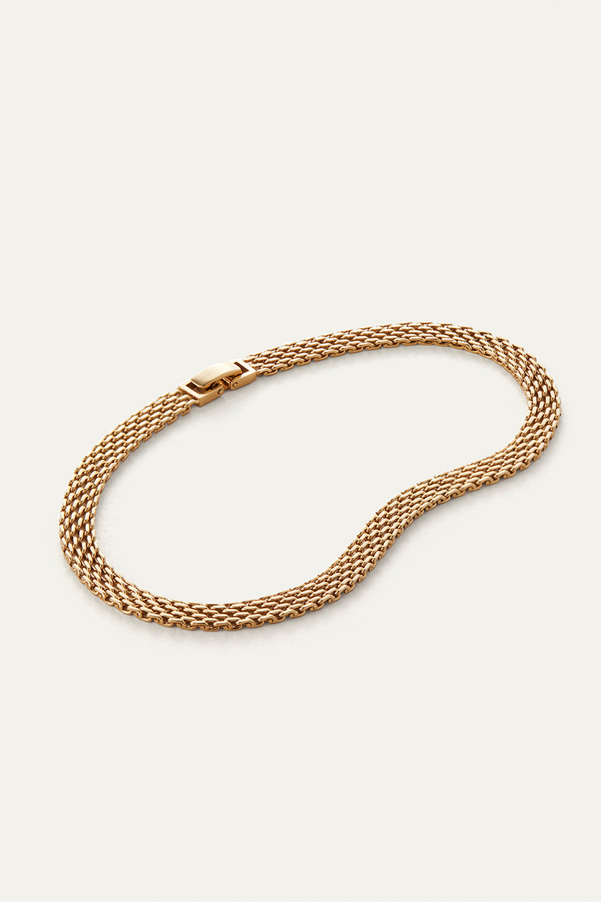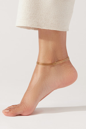 The cool girl piece you need in your jewelry collection, this flat mesh chain lays flush against the skin, following the ankle’s natural curves. A custom foldover clasp makes for easy closure. Finished in high-polish gold.