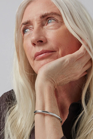 This tubular chunky bangle will be the “white T-shirt” of your jewelry box. Wear it on its own or finish your arm stack—either way, Gia is a major must-have. This custom bracelet opens and closes with a hinge and tab lock closure. To open, push down on the highest point of the clasp before pulling the bangle open. To close, listen for a “click” to ensure tab is locked properly. Note: this design wears best when the closure is secured on the inside of your wrist, and the updated water-resistant steel ensures the design stays put. Finished in high-polish silver. By Jennybird.