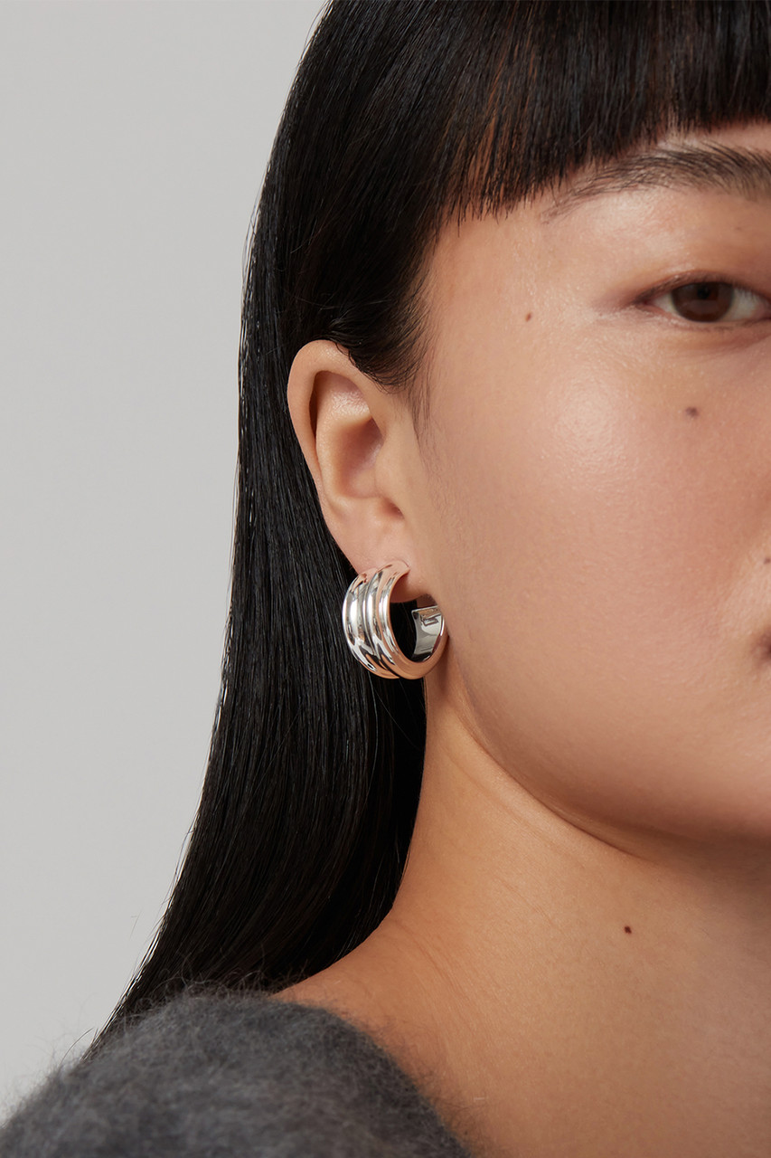 These silver hoop earrings boast deep contours. They are paired with Flat Disc Earring Backs for extra comfort. Finished in high-polish silver. By Jenny Bird.
