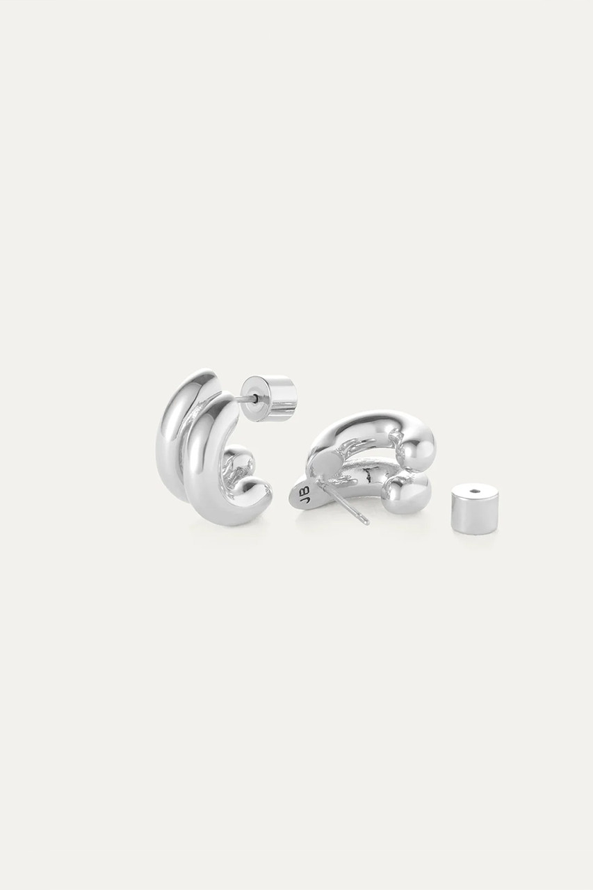 JB’s most talked-about earrings in a shrunken size. This custom design wears like a huggie in a single piercing, while creating the illusion of two hoops stacked together. Plus, they’re micro-light so you won’t even feel them on. Finished in high-polish silver. By Jennybird.