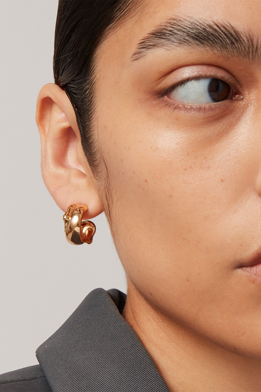 Chunky hoop earrings with an understated profile and custom JB ball backings. Finished in high-polish 14k gold. By Jenny Bird.