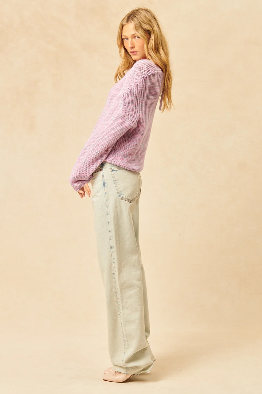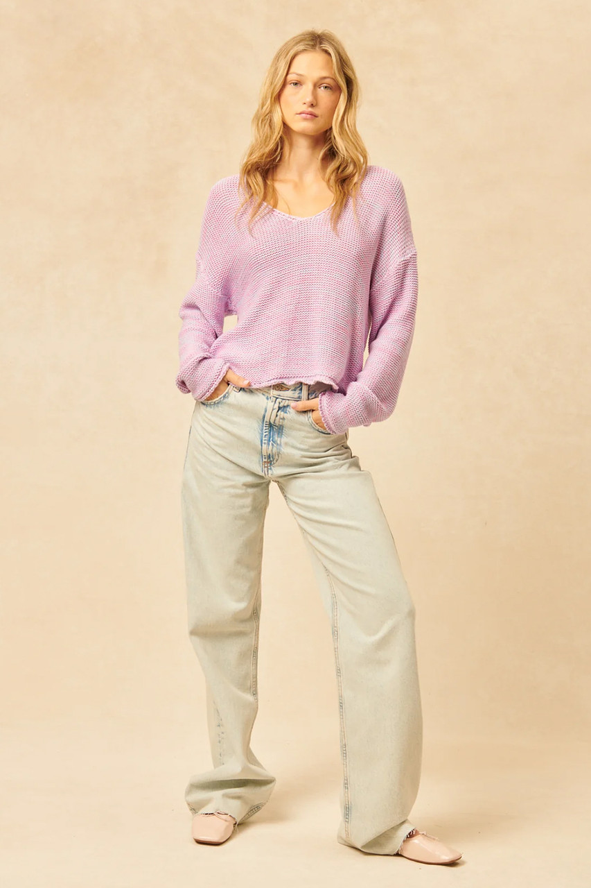 Crafted from a soft, textured knit, this relaxed-fit sweater features a flattering V-neckline and subtle rolled hem for a naturally lived-in feel. Lightweight and versatile, it’s perfect for layering or wearing solo. Style it with denim shorts for a casual touch or layer it over a dress for an effortlessly chic look. By John & Jenn.
