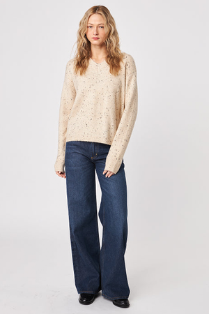 This high-quality sweater is an essential piece for the cold season, offering both practical warmth and fashionable style. Featuring a flattering v-neck design and relaxed fit, it guarantees ultimate comfort and on-trend appeal. Its versatility makes it perfect for layering or wearing on its own, making it an absolute must-have for any wardrobe. By John & Jenn.