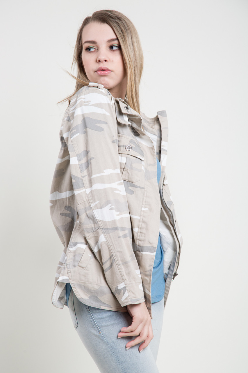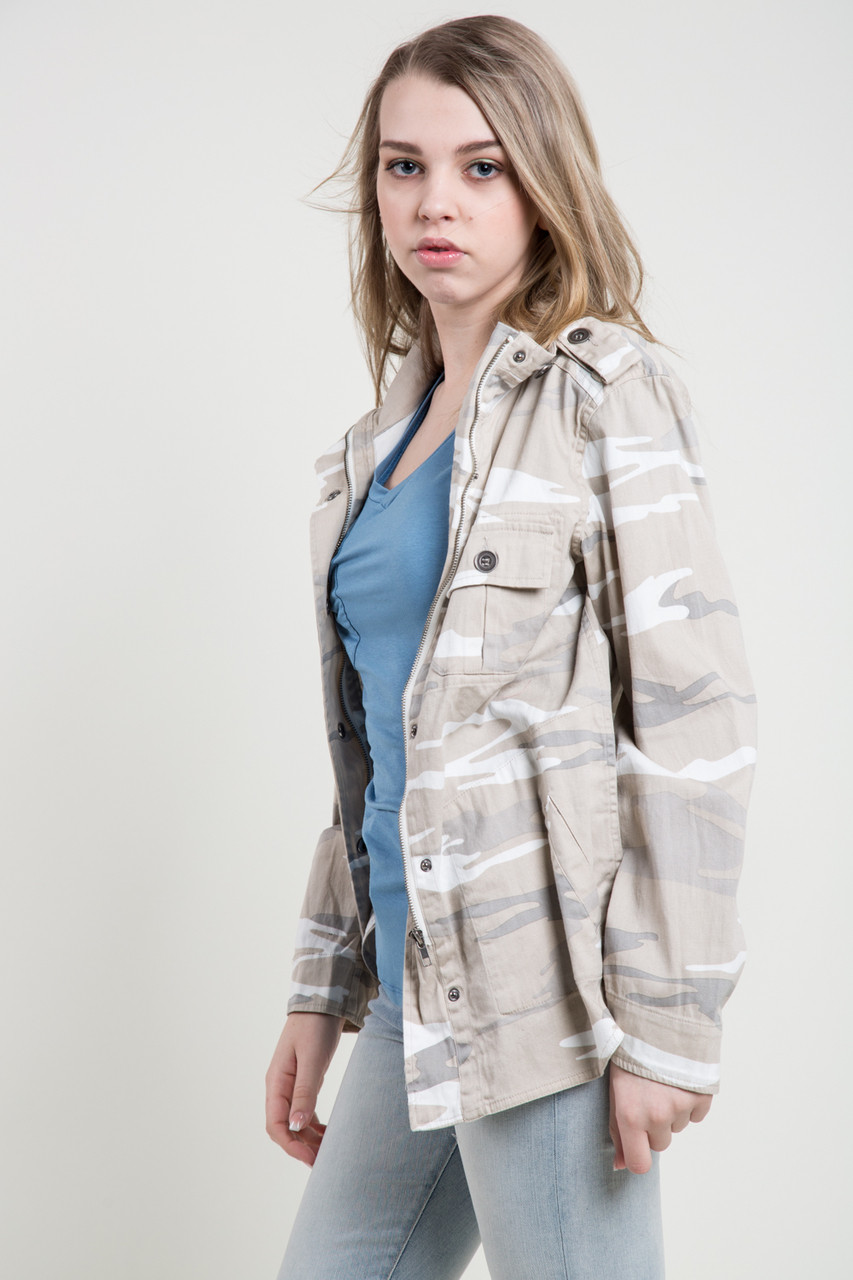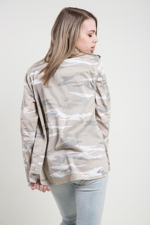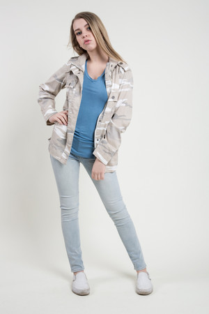 This beautiful safari jacket features snap button closure, front patch pockets, and side pockets make it as comfortable to wear as it is easy to love! Epaulette detailing at the shoulders provides the cool, vintage feel you’ll love. By Kersh.