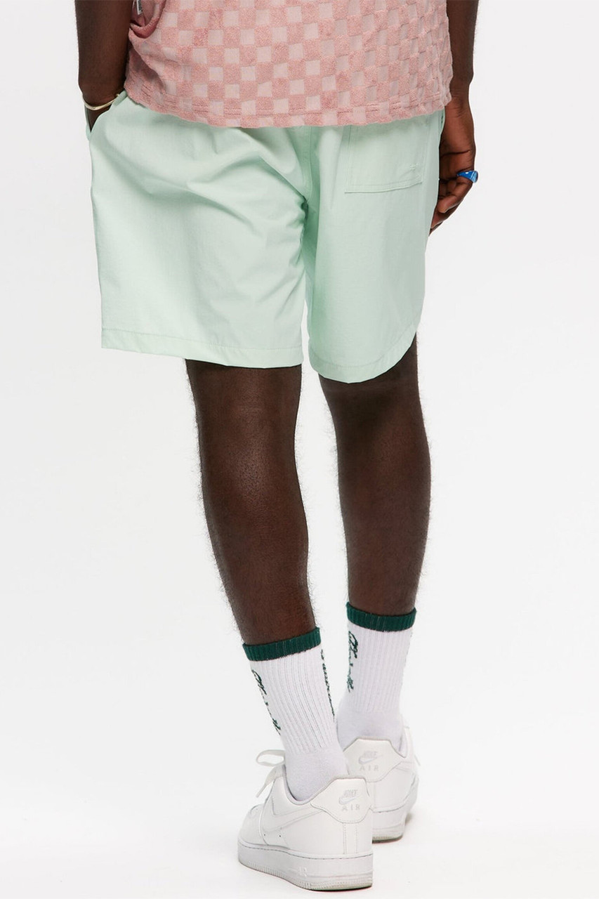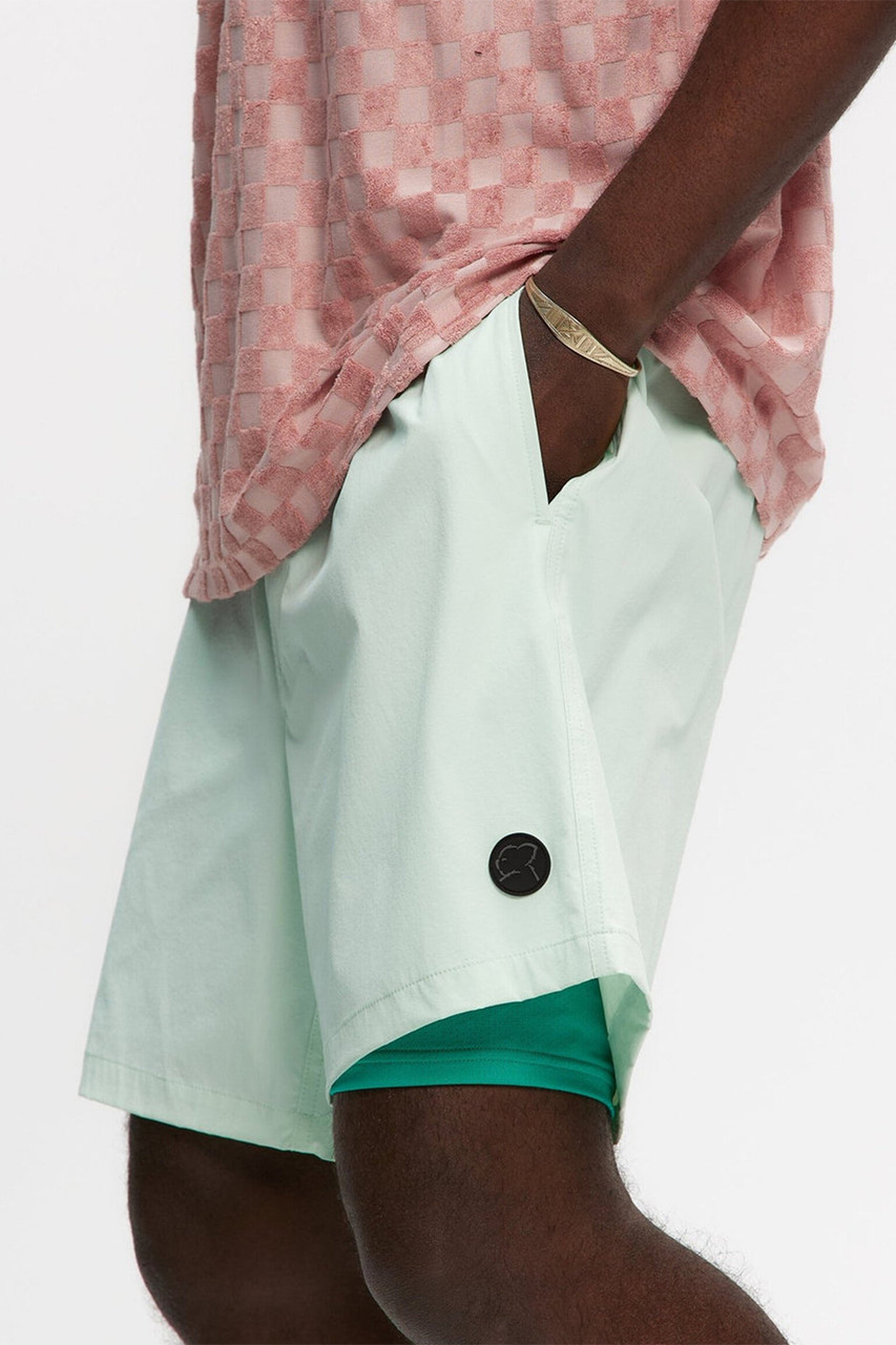 Our essential beach shorts, crafted from quick-drying fabric, feature a comfortable net lining. We’ve perfected their fit to be just right, not too short and not too long. They come with an elastic waistband adorned with our Kuwalla logo. By KuwallaTee.