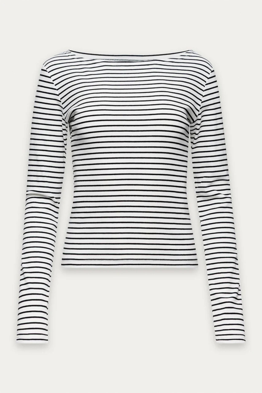 Striped rib long sleeve with a soft, stretchy fit and boatneck neckline. By KuwallaTee.Â