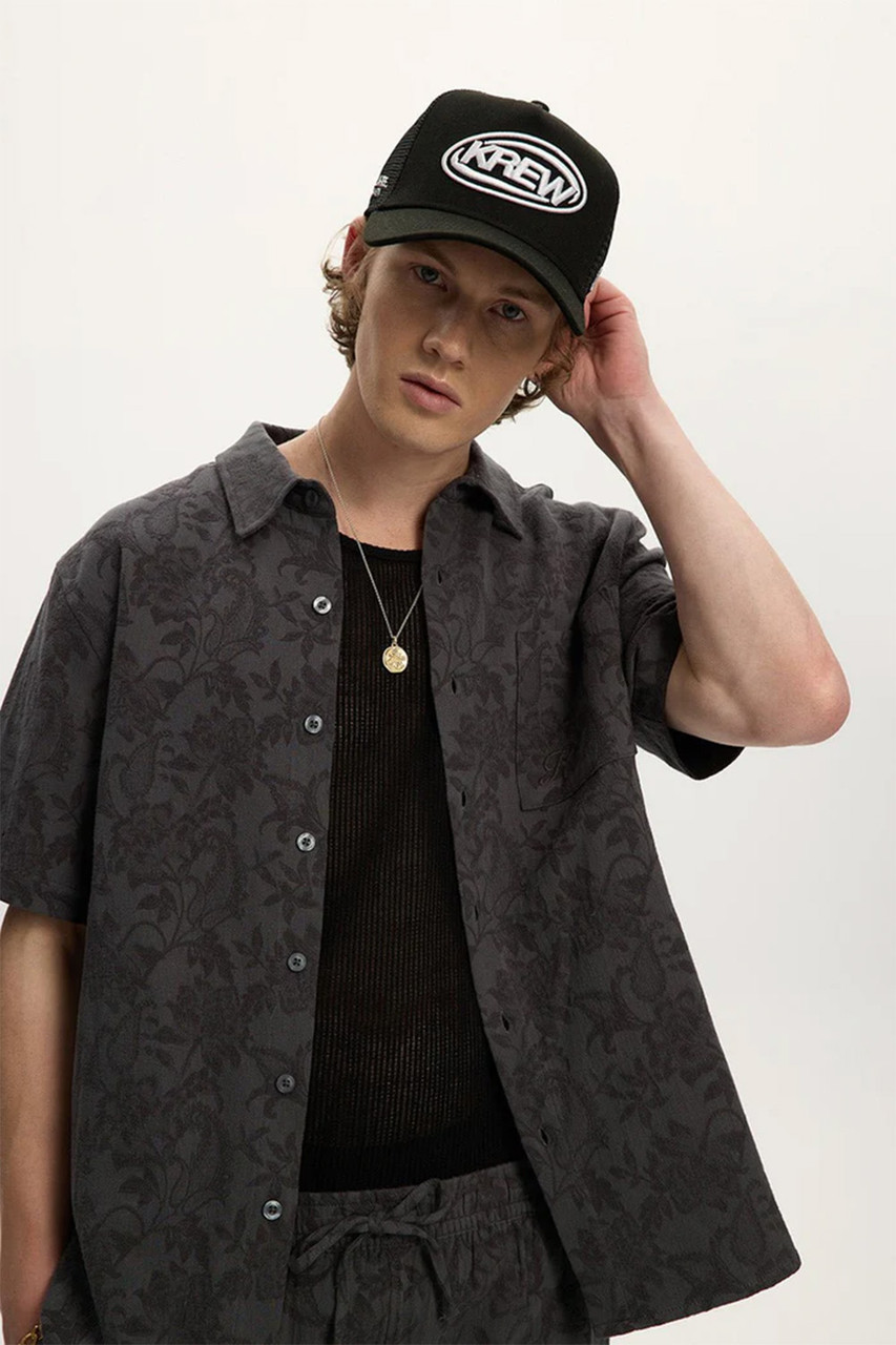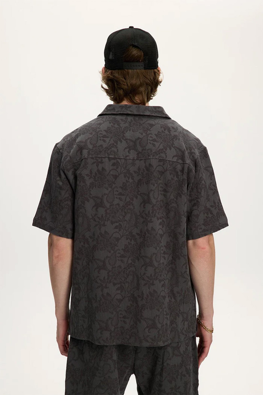 KuwallaTee Jacquard Linen Shirt in Charcoal