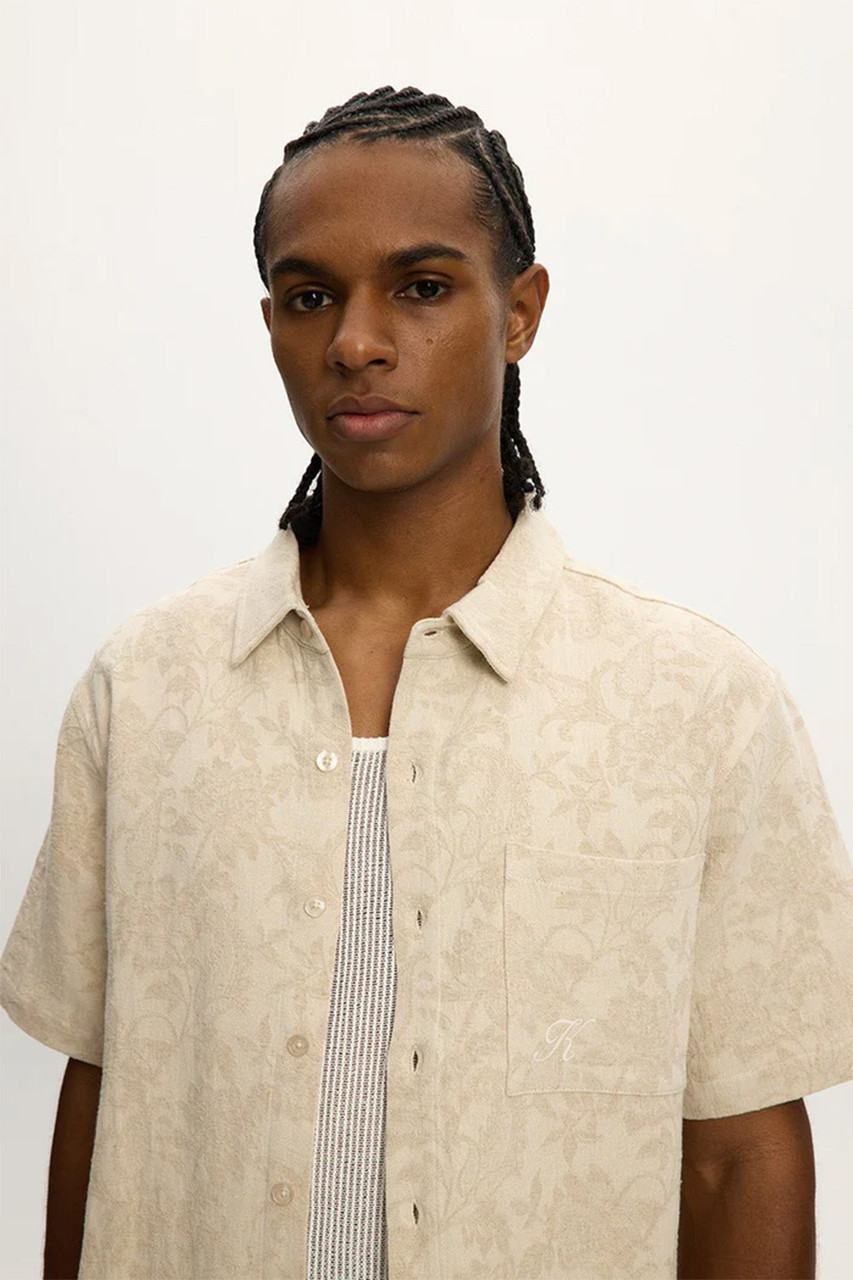 Textured jacquard fabric with a breathable linen blend. Relaxed fit for effortless style and comfort. By KuwallaTee.